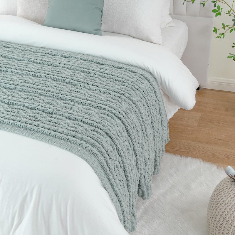 Battilo Sage Green Throw Blanket for Couch,51"x67", Cable Chenille Knitted Throw Blankets for Bed, Sofa, Chair,Living Room, Soft Cozy Thick Warm Chunky Textured Blanket Throw