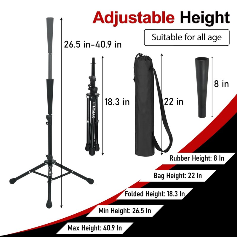 - 【Baseball Practice Sets】This FILOMAX Baseball Batting Set includes 1 baseball tee for hitting+ 2 tee topper replacement+1 tee storage bag.Spray Paint steel frame Pipe can resist bending, twisting and rusting,this allows you quick, happy and quality at bats! The baseball equipment Perfect for beginners and professionals, Any age player can use this portable tee-ball.