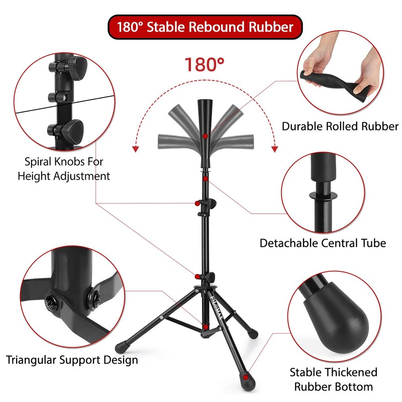 - 【Upgraded Version】 this Baseball Batting Tee has been upgraded in several ways,Batting tee Baseball tee Softball Tee Extra-Thick steel tubes for durability,Brackets made of 1.2mm thick steel and with a baking finish,Sturdy tripod configuration provides stability and collapses for hitting or batting.A flexible, durable Rubber topper,Suitable for all kinds of batting training practice.