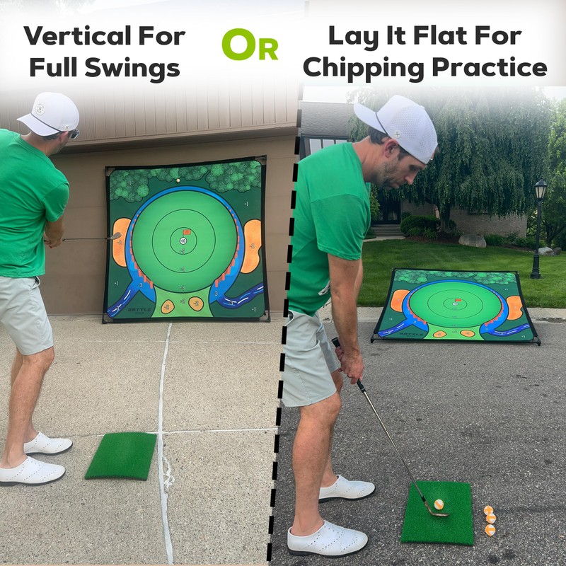 - Golf Anywhere: Bring the golf course to your backyard, campground, or even the lakehouse. Lay it flat for chipping practice or set it vertically for full swings so your entire golf game gets unlimited training.