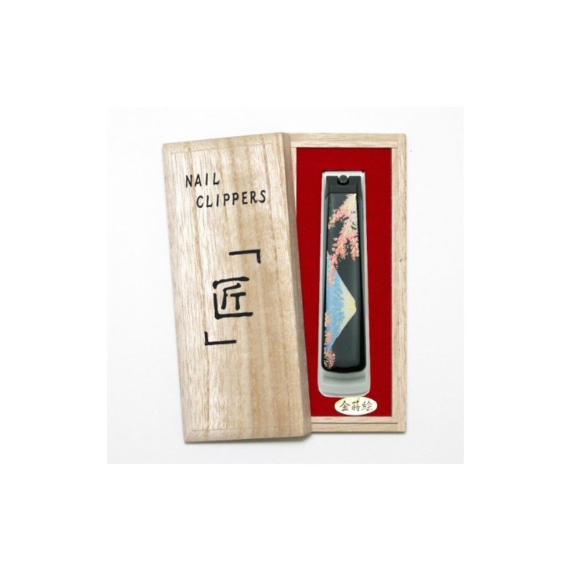 Battle Lacquer Crafts 蒔絵 Nail Clippers Fuji and Sakura Paulownia Box