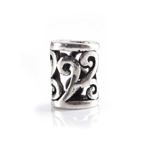 Small silver hair bead with spiral pattern in Celtic style.