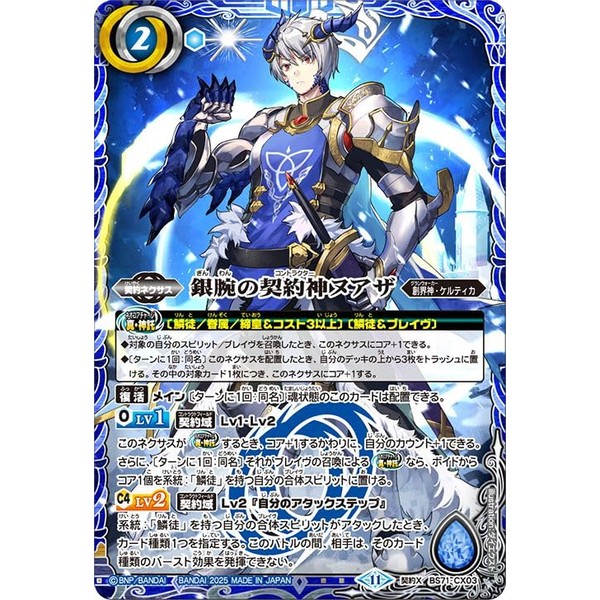 Battle Spirits Silver Arm Contract God Nuaza (Contract X Rare) Contract: True Chapter 4 Return of the God King (BS71) CX03 | Founding God Keltika Contract Nexus Blue