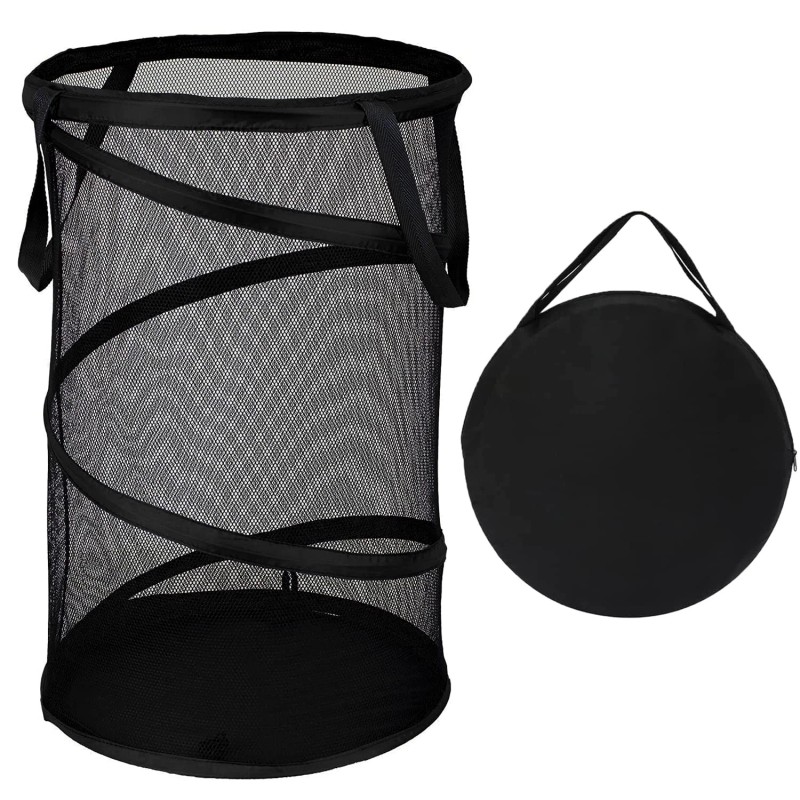 This mesh pop-up hamper has easy-carry handles that make toting laundry from room to room a snap.