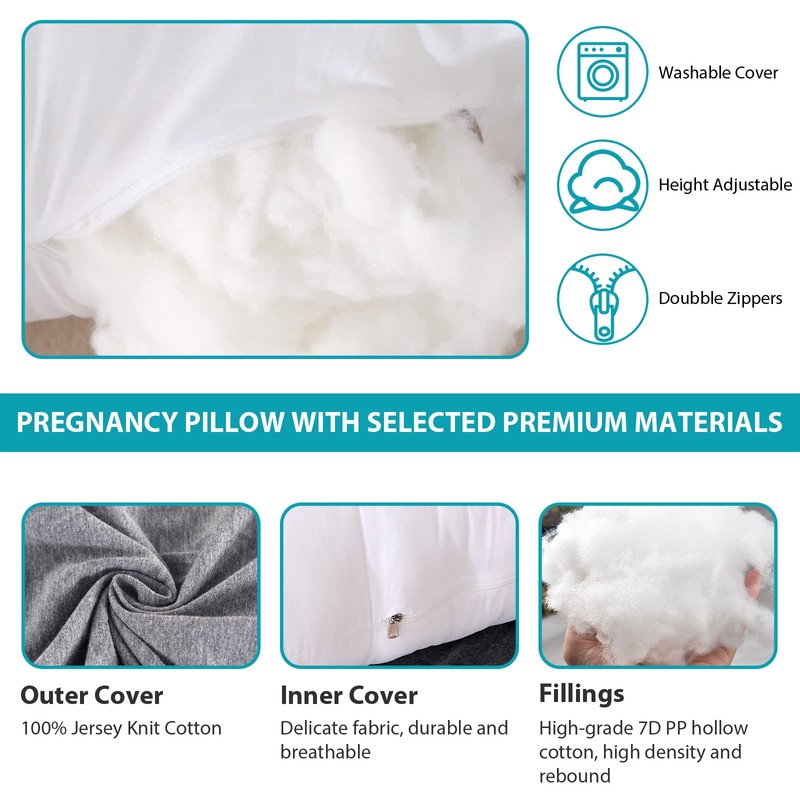 - Perfect for side sleep: Our body pillow helps support your back, hips, knees, neck, and head to help ease discomfort associated with pregnancy.