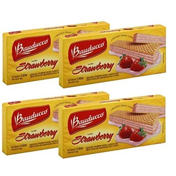 Bauducco - Strawberry Wafer - 5.82 Oz (Pack of 04) | Biscoito Wafer de Morango - 165g