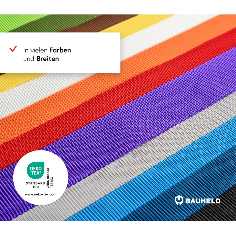 BAUHELD® 10 m Universal Webbing Strap 25 mm [Made in Germany] – Polypropylene Fabric Mounting Strap – Strap for Attaching, Sewing or Accessories for Backpack, Suitcase, Plug-In Buckle, Tension Strap –