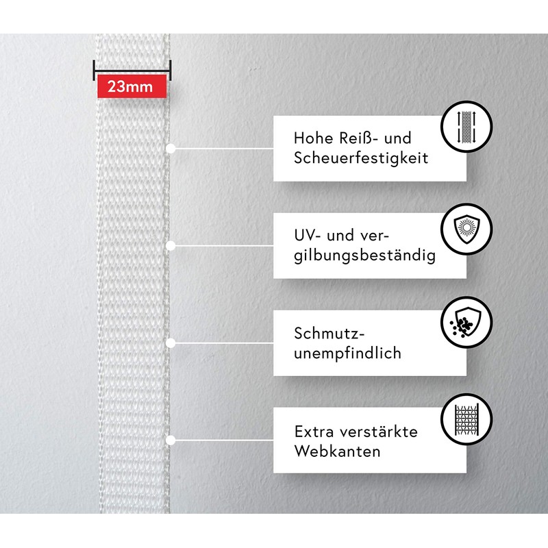 • Durable workmanship - thanks to the specially incorporated cross weaving, the blind tape does not tear further even if damaged and allows a particularly long service life