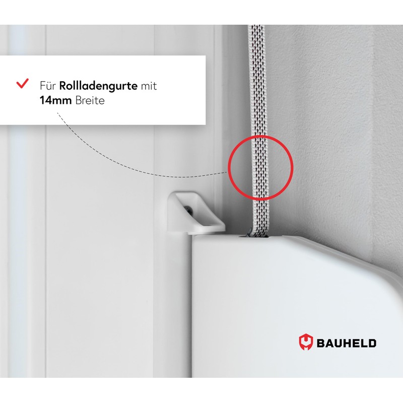 BAUHELD® Surface-Mounted Roller Shutter Belt Winder [Hinged] - Mini Roller Shutter Winder with Plastic Drum - For Roller Shutter Belt 14 mm [Without Strap] - 180° Swivelling with Hole Spacing of 155
