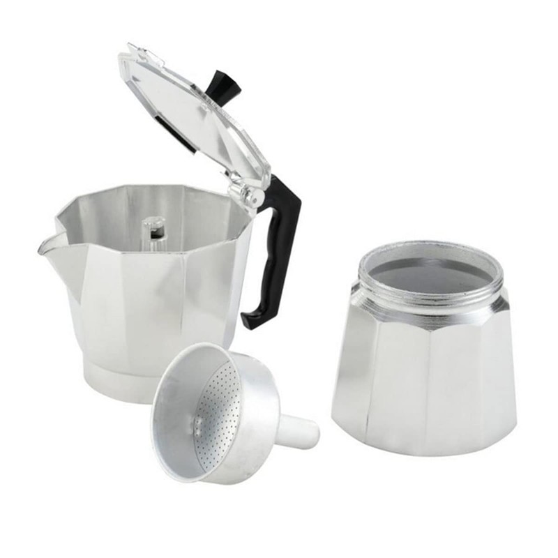 - Durable cast aluminum coffee maker with the classic octagonal shape.
