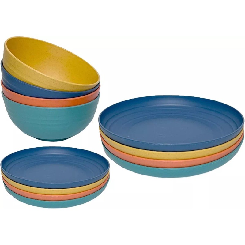 Material de trigo respetuoso con el medio ambiente hecho de fibra de paja de trigo natural y polipropileno de grado alimenticio. Es 100% libre de BPA, no tóxico, inodoro y respetuoso con el medio ambiente. Sorprende a tus amigos y familiares dándoles juegos de vajilla ecológicos y reutilizables como regalo