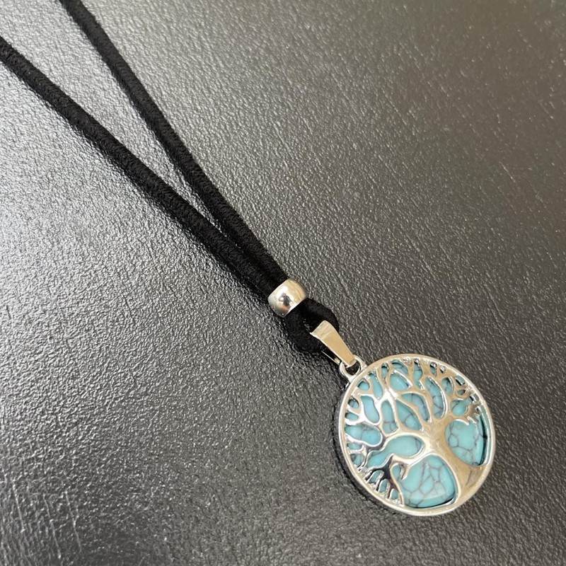 Baum des Lebens Anhänger Frau Mann Versilbert Zamak - Naturstein Halskette Farben Amulett Schutz - Ideal für Geschenkideen (Türkis)