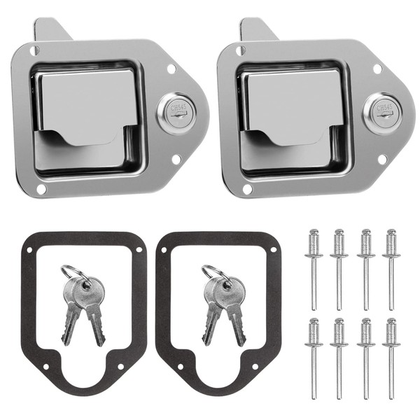 - 【Package Contains】2 stainless steel paddle latches, 2 gaskets, 4 matching keys, 8 blind rivets.