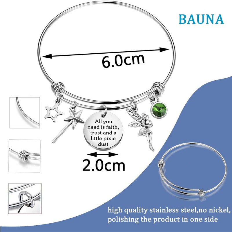 BAUNA Book and Movie Quote Jewelry All You Need Is Faith Trust And a Little Pixie Dust Fairy Charm Back to School Gifts (Fairy Bracelet)