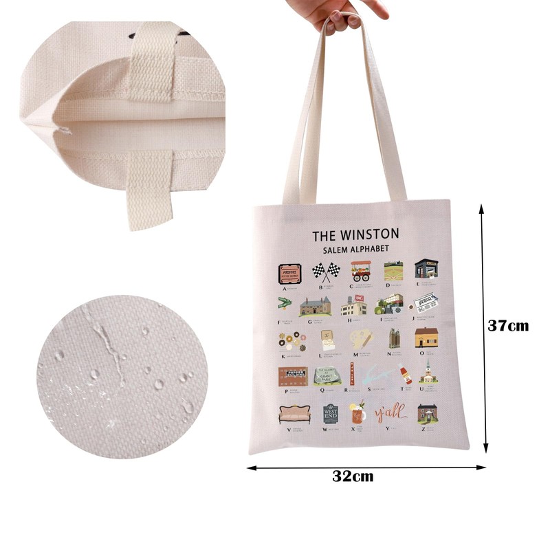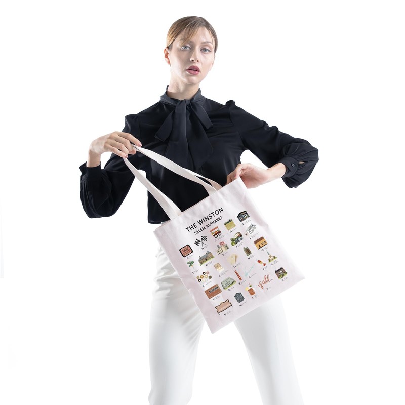 BAUNA Winston Salem NC Alphabet Print Tote Bag Winston Salem Trip Reusable Grocery Shopping Bag Winston Salem Souvenir (Winston Tote)
