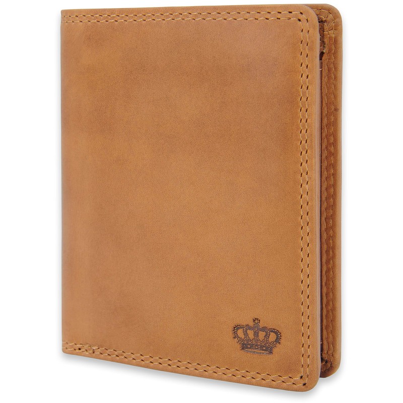 Baur Men's Genuine Leather Wallet with RFID Protection Large Wallet Portrait Format Wallet with Coin Compartment Wallet, camel, Portrait format with press stud inside