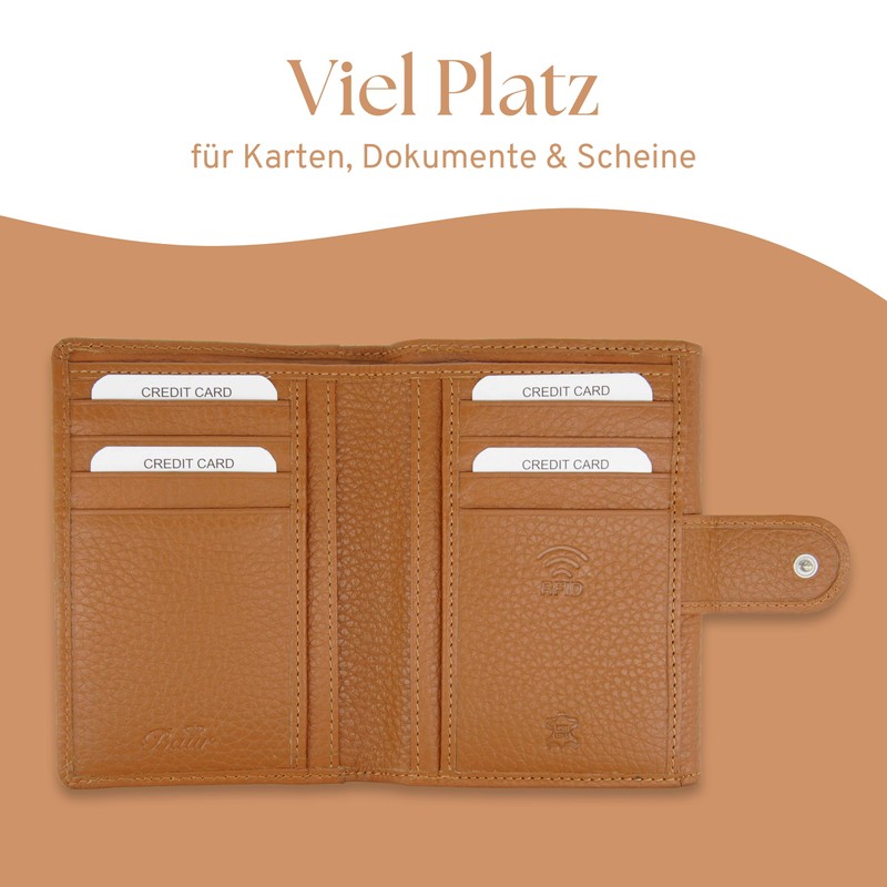 Baur Women's Genuine Leather Purse | Purse with RFID Protection | Small Wallet Many Card Slots | Wallet with Press Stud Closure | Women's Wallet, Cognac, 13,5x10,5x2,5cm, Classic