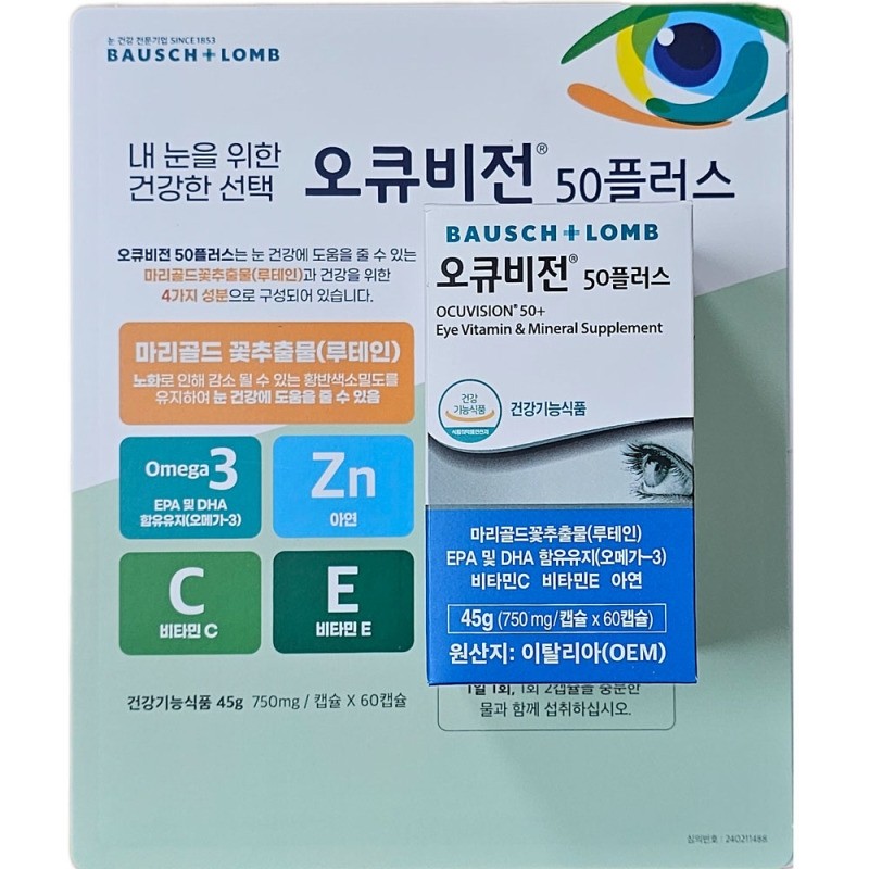 Bausch + Lomb Ocuvision 50 Plus 750mg x 60 capsules / 바슈롬 오큐비전50플러스 750mgX60캡슐