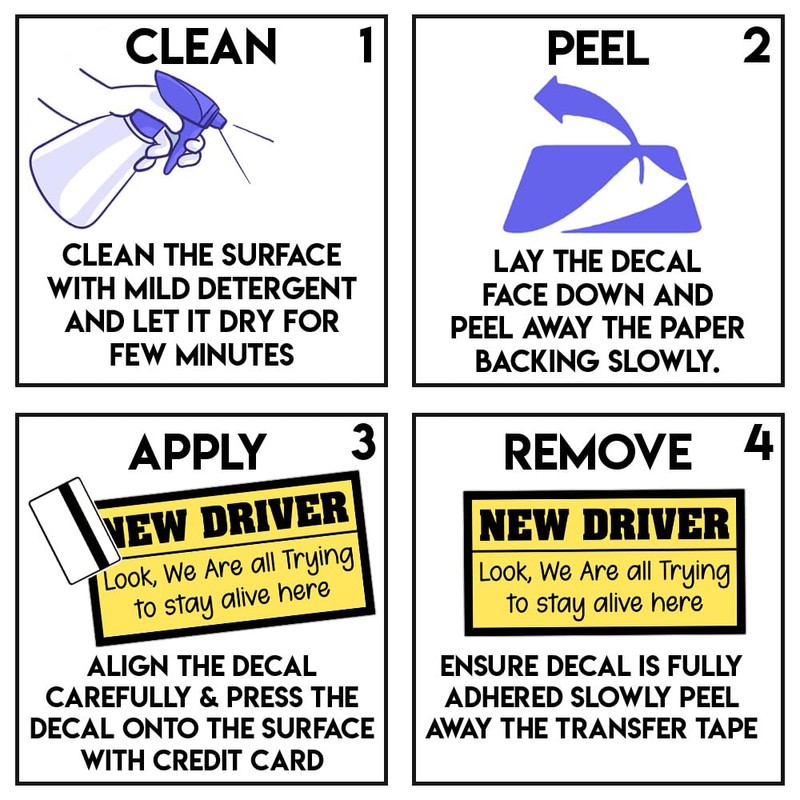 - Easy Installation Clean the surface with mild detergent and let it dry. Lay the decal face down and Peel away the paper backing slowly . Align the decal carefully and press onto the surface with a credit card to smoothly transfer the decal to the surface. Ensure the decal is fully adhered slowly peel away the transfer tape.
