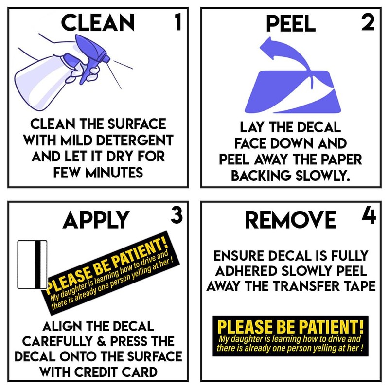 - Easy Installation Clean the surface with mild detergent and let it dry. Lay the decal face down and Peel away the paper backing slowly . Align the decal carefully and press onto the surface with a credit card to smoothly transfer the decal to the surface. Ensure the decal is fully adhered slowly peel away the transfer tape.