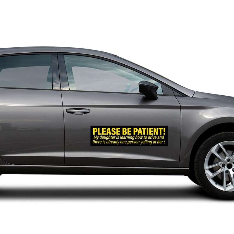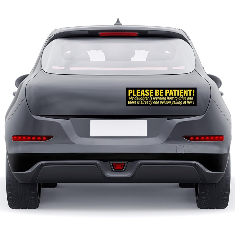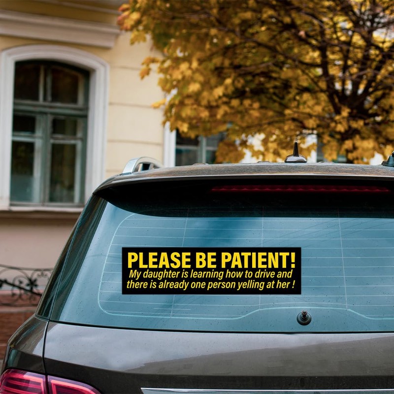 BAVAHA Please Be Patient My Daughter is Learning How to Drive and There is Already One Person Yelling at Her! Be Patient Kid Driver Sticker New Driver Sticker Student Driver Sticker [15"x3.75"]