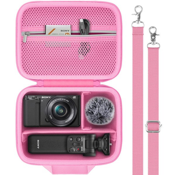 Baval for Sony ZV-E10/ZV-E1/ZV-E10 II Vlog Digital Camera Hard Carrying Case,Compatible with Tripod(GP-VPT2BT),Microphone,Camera Len and Accrssory(Pink Case)