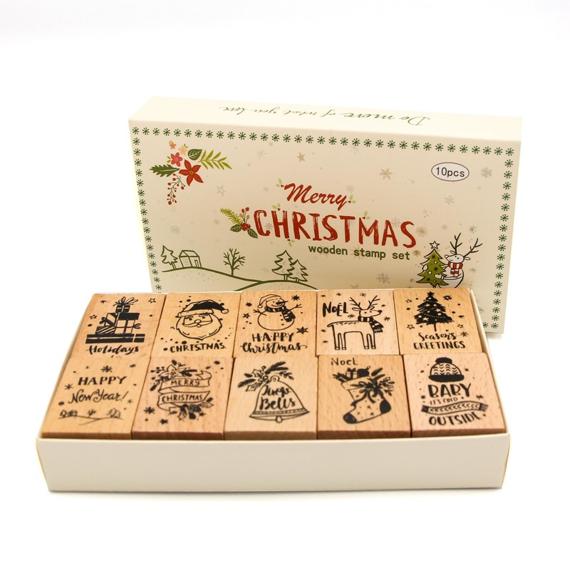 - Include 10pcs wooden Christmas stamps.Ideal stamp to decorate cards for Christmas.