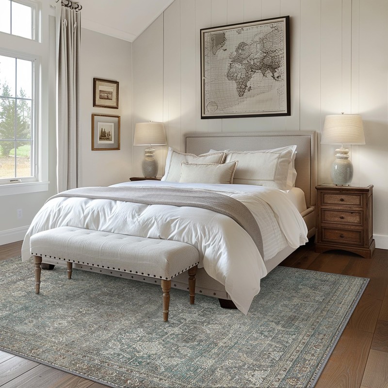 - Aesthetic Decoration: Elevate your home decor with our beautifully designed abstract rug that combines neutral and cool tones, including beige, light grey, deep blue, cream, and tan. The subtle, worn-in patterns offer a vintage yet contemporary look, making it a perfect addition to any modern or classic interior.