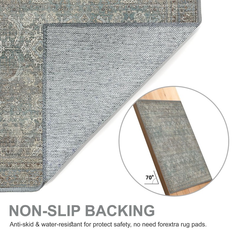 High quality non-slip TPR latex backing that effectively keeps the rug in a stable position and prevents dangerous movement and slipping.