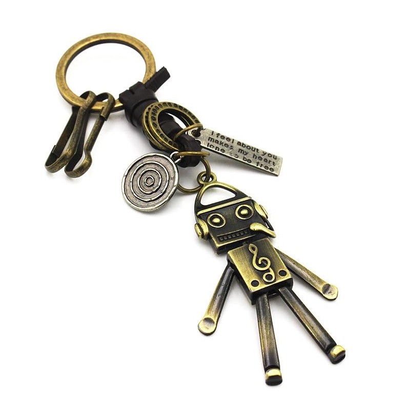 BAWAKO Schlüsselanhänger aus hochwertigen Metall mit Karabiner und bezaubernde Metall Accessoire, Schlüsselring für Autoschlüssel Wohnungschlüssel tolle Qualität (Robot)