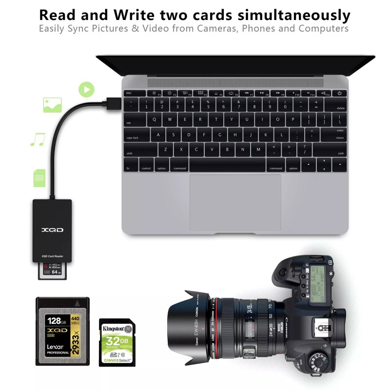 ✔️Professional XQD Card Reader:The XQD/SD card reader adapter is designed for photographers, it's easy to download pictures and 4K videos from your XQD card reader to your laptops/computers via the USB interface. Support XQD card and SD card at the same time.Improve your efficiency.
