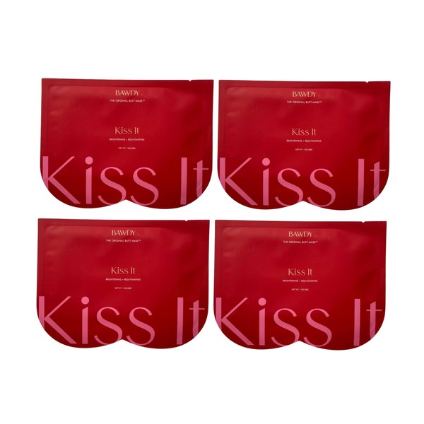 BAWDY Kiss It 4 Pack - Citrus Beauty Butt Mask - Illuminating + Rejuvenating - 2 Sheets, One for Each Cheek - Clean Beauty for Your Butt (4 Single Use Masks)