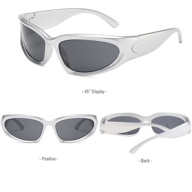 BAWUYI Fashion Y2K Wrap Around Sunglasses for Men Women 2000s Accessories Cool Cyber Glasses Biker Shades Shield (Silver Frame-Grey Lens)