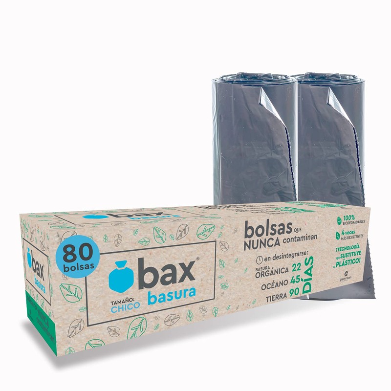 bax®, 80 Bolsas de Basura 35x43cm, Biodegradable y Compostable, sustituye al Plástico, para basura en seco, 4 Rollos