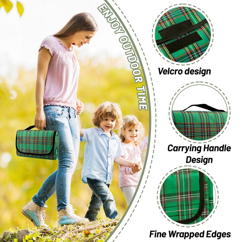 - The picnic mat is foldable and portable, folds easily and quickly into an easy to carry mat. Camping blanket with Velcro fastener, space-saving design, easy to carry and store. Comes with a convenient carry handle. When not in use, it folds up and fits in the boot, picnic basket or stroller.