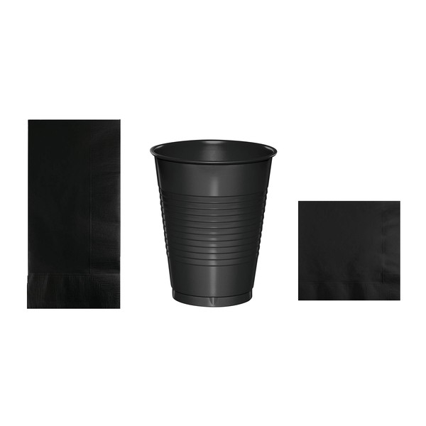 Baxters Party Bundles Bulk, Black, 40 Count 16 Ounce Plastic Cups, 50 Count Dinner Paper Napkins, 50 Count Luncheon Paper Napkins, Pack Contains 140 Pieces Made in the USA