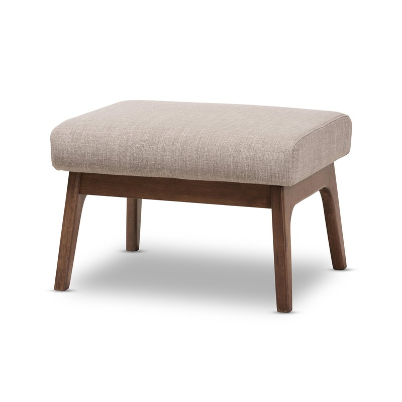 Baxton Studio Birk Mid-Century Modern Walnut Wood Light Grey Fabric Ottoman