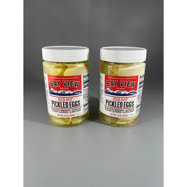 Bay View Packing Gourmet Original Salt N' Vinegar or Red Hot Pickled Eggs - Bar Food - Snacking - 2 Pack