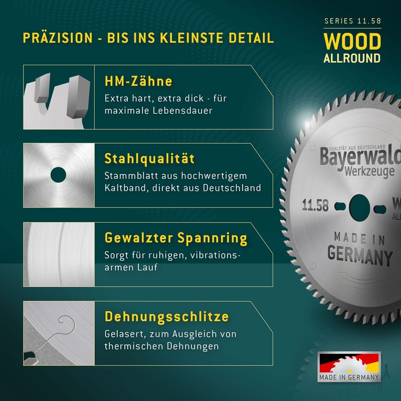 Saw blades from Bayerwald Werkzeuge are "Made in Germany" for optimal quality, first-class workmanship and long service life.