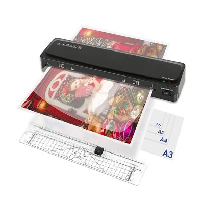 - Work quietly & Wide CompatibilitThis 13inches A3 laminator machine produces less than 40db of noise, providing a quiet workspace that helps you concentrate and keeps your meetings organized. It also has a 13 inches wide entrance for laminating A3/A4/A5/A6 size paper and more. Suitable for photos, cards, certificates, work permits, menus, drawings, etc.