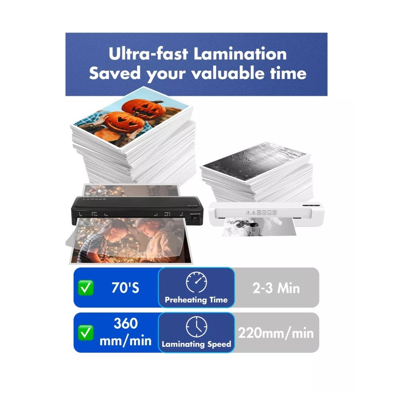 - Lightweight and Portable Design: This Portable Personal laminating machine is <3lb, Lightweight and easy to carry or store. Its portability makes it easy to take it to the office, school or travel with you.Say goodbye to bulky machines.