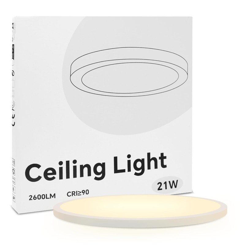 - Ultra slim and streamlined: At only 1.7 cm thick, it is one of the thinnest LED ceiling lights in its class. The simple, elegant design with the smooth PC glass shade blends well into modern, classic or other interior styles. The flat profile does not interfere with the room making it ideal for low ceilings or smaller spaces.