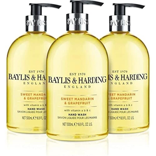 Baylis & Harding Liquid Hand Soap Wash with Dispenser, Sweet Mandarin & Grapefruit, 16.9oz/500ml (3-Pack)