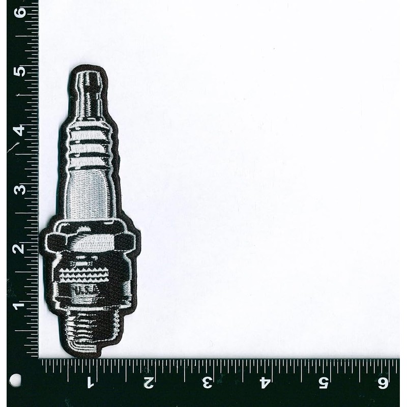Bayonet Design - Spark Plug Embroidered Patch - Wax Backed - 1 3/4" X 5" Patch - Motorcycle - Moral Patch - Fun Patch - Gear Head - Hot Rod - American Muscle