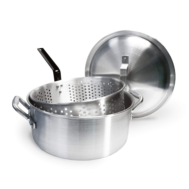 Bayou Classic 1350 14-qt Aluminum Fry Pot w/ Lid and Aluminum Perforated Basket Features Heavy-Duty Riveted Handles Domed Lid Perfect For Frying Fish Shrimp Chicken and Hushpuppies