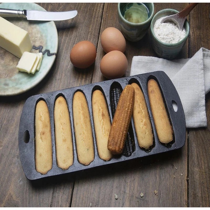 Product Description: This cornbread pan features a cast iron construction. This pan makes a great addition to any kitchen.