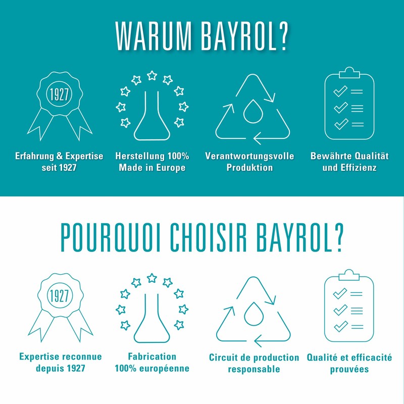 - QUALITÄT „MADE IN EUROPE“: Das hohe Qualitätsniveau steht bei BAYROL an erster Stelle. Deshalb werden alle Produkte mit modernster Technik in Europa produziert