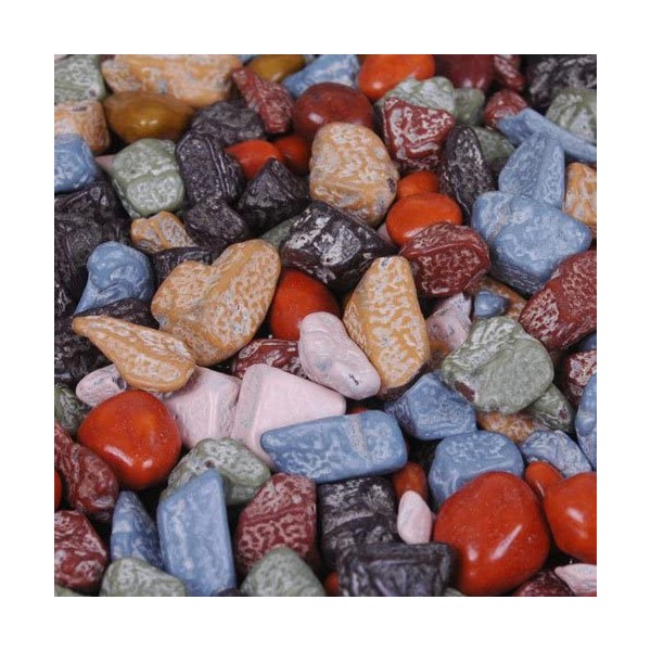 • These special milk chocolate multi-colored chocolate rocks (or “rock chocolates”) are a fantastic flavor or edible decoration for any occasion. Chocolate rocks are candies designed to look like brightly colored river rocks. Serve these colorful chocolate rocks as party favors for a kid’s birthday or an outdoor celebration, and your guests will surely get a kick out of how naturalistic they look. Rock candy will add color to a candy buffet or dessert table