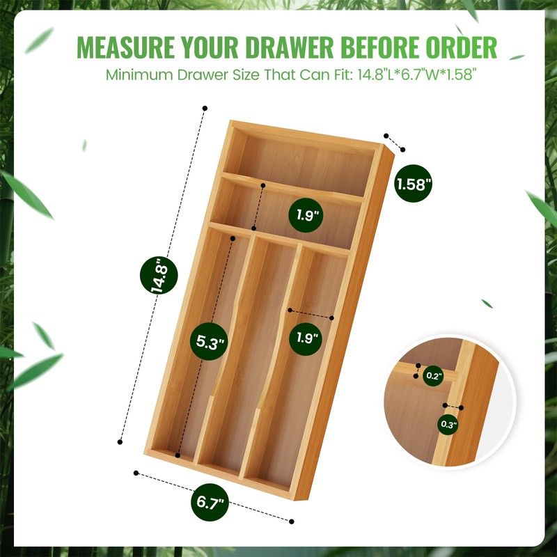 - Elegant Appearances: The natural bamboo complements your kitchen drawers and makes your kitchen more classy