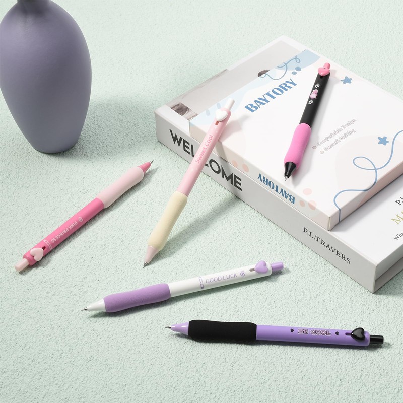 This set of 10 black gel pens features an elegant and personalized look with its heart design. Each pen features a push action design that is convenient and easy to use, making writing more convenient and enjoyable. Ink flows smoothly, writing is light and easy, and handwriting is clear and legible.